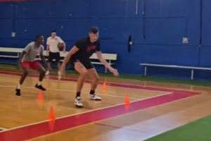 视频中,克林根和小个球员一起进行脚步训练,开拓者官博配文道:“6尺vs7尺,来和大根一起练练脚步。”