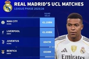 体育资讯8月29日讯 本赛季欧冠联赛阶段对阵抽签结果出炉,德国转会市场列出了皇马对手的身价。